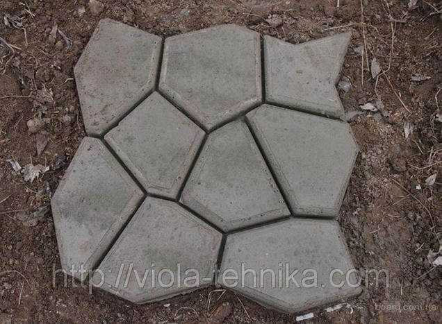 Если участок земли, на которой вы хотите поместить дорожку, не подготовлен, более разумно будет использовать форму размером 60х60х6 см. Такая форма имеет общую плиту, на которой расположены все 9 камней и распределение нагрузки на которую идет равномерно. Благодаря такой конструкции форму можно использовать даже для заливки площадки под автомобиль, для чего форма размером 44х44х4 см, где 9 камней отливаются отдельно, будет не пригодна.