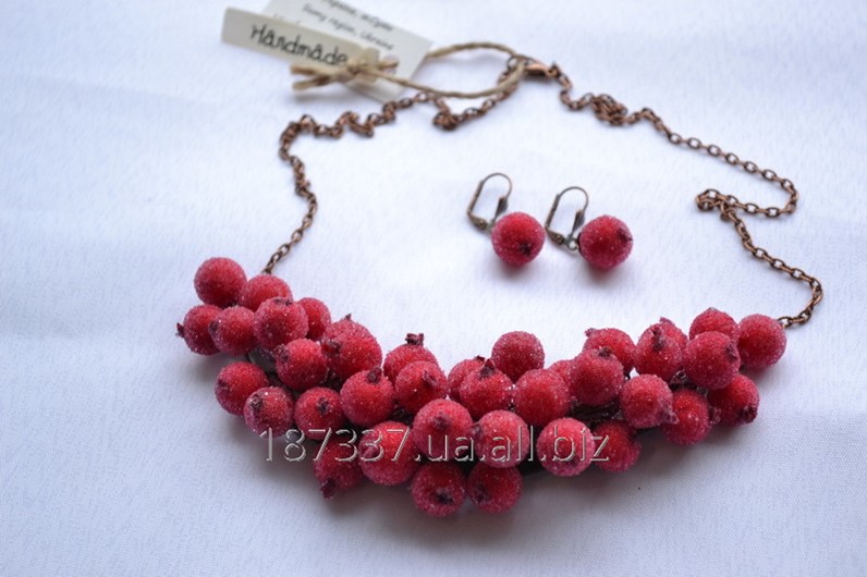 Характеристики дизайнерского комплекта украшений – ожерелья и серьги Заледенелые ягоды A12-01