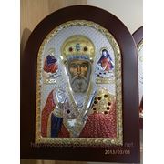 Образ Николая Чудотворца. Изогнутая шпонированная доска 24*32*3 см, липа, масло, поталь, стразы Сваровски. Цена 3500 грн.