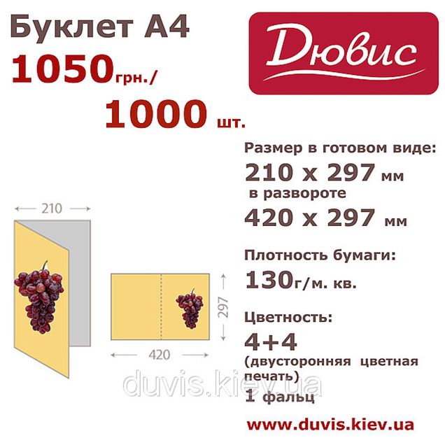 Буклет А4 1 000 шт., 130 г/м.кв., Киев
