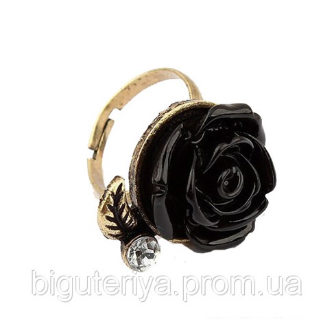 “Кольцо с черной розой и прозрачным камушком. Очень женственное и нежное. Размер регулируется.”