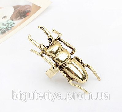 “Кольцо в виде жука. Жук довольно крупный. Очень авангардное и необычное кольцо. Размер регулируется.”