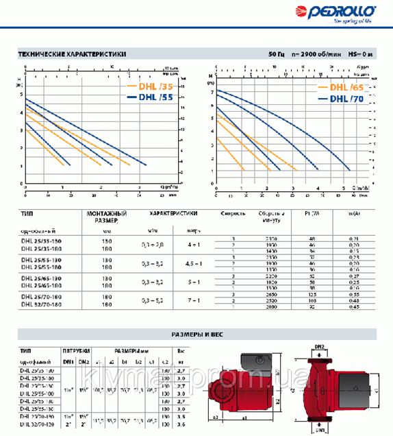 Характеристики насоса для отопления DHL 25/35-180