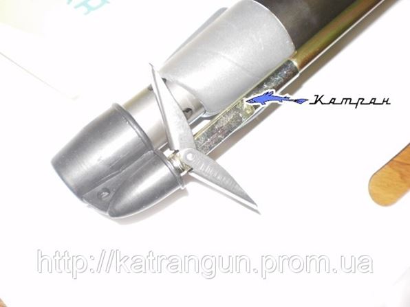 Гарпун (8 мм) с задним зацепом (хвостовик 9 мм), снабжен скользящей втулкой для привязывания линя, демпферной пружиной и ограничительной шайбой. Резьба для наконечника — М7.
