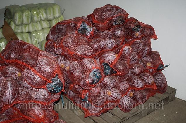 КАПУСТА КРАСНОКАЧАННАЯ ЗАФАСОВАНА В СЕТКИ ПО 15 КГ И В КОРОБКИ С ПРЕДВАРИТЕЛЬНОЙ УКЛАДКОЙ КАЖДОЙ ГОЛОВКИ В ПОЛИЭТИЛЕНОВЫЙ ПАКЕТ.