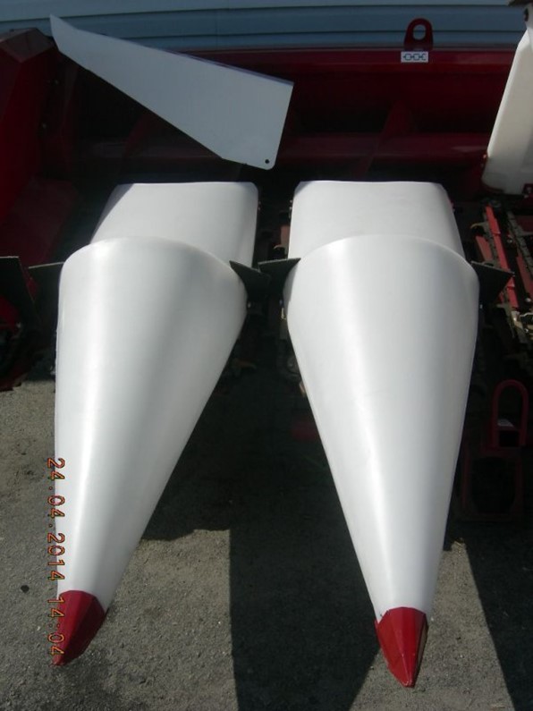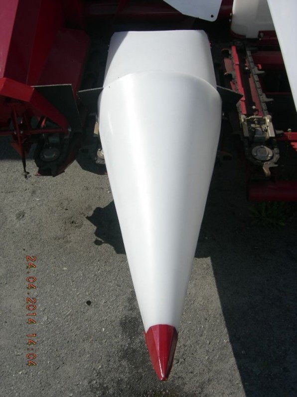 Конструкция жатки для отделения початков позволяет регулировать расстояние между пластинами с рабочего места комбайна, что позволяет сократить время настройки при уборке различных сортов кукурузы.
